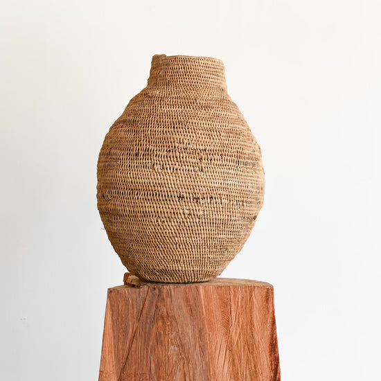 Crafted by the hands of Zimbabwean women, this one-of-a-kind Buhera basket carries with it a weaving technique passed down through generations. Rooted in the traditions of the BaTonga people—renowned for their distinctive basketry—each piece is a testament to time-honored technique, patience, and cultural heritage. The weavers behind this piece only take orders once a year, making each basket a rare and limited offering. No two are ever exactly alike, and once sold, they may not return to stock for many months—if ever.
